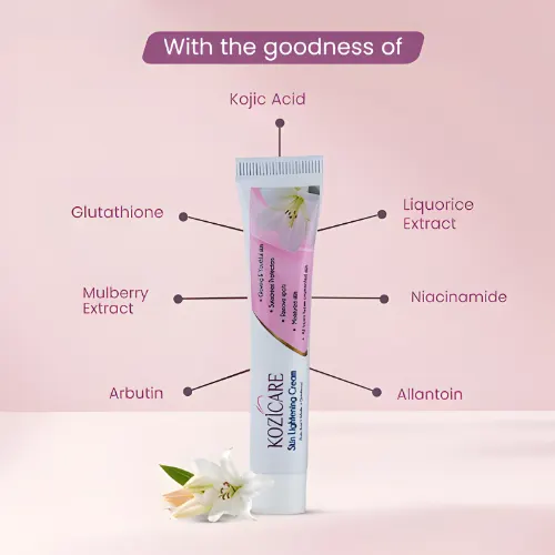 Healthvit Kozicare Skin Lightening Cream is a popular choice for anyone looking for a safe skin lightening treatment at home 🌟. Enriched with Kojic Acid, Arbutin, and Glutathione, it brightens skin, fades dark spots, and evens out pigmentation, giving a healthy, natural glow ✨.