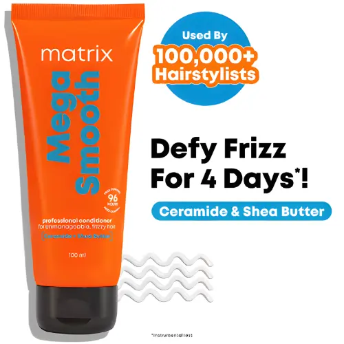 Matrix is a well-known salon brand 💇♀️✨, and Matrix Mega Smooth Conditioner is made for people who struggle with dry, rough, and frizzy hair 😣. It is enriched with Shea Butter 🧈 and Ceramides, which help deeply nourish the hair, smooth rough strands, and control frizz ✨ without making hair feel heavy.